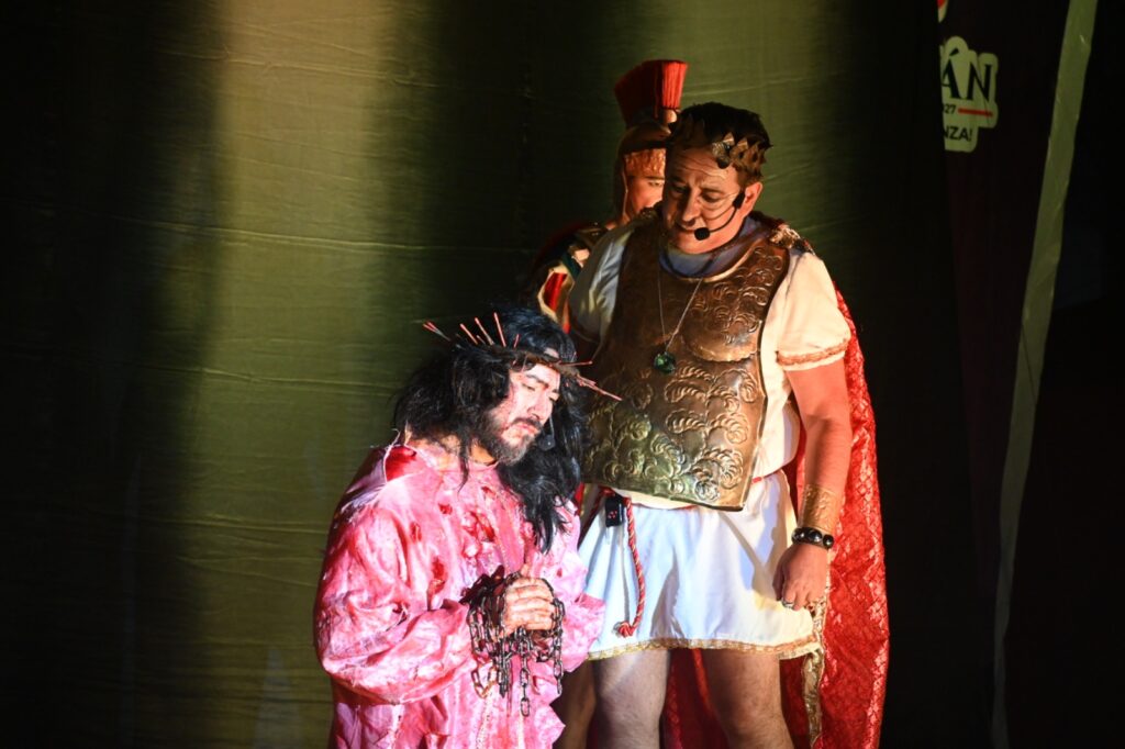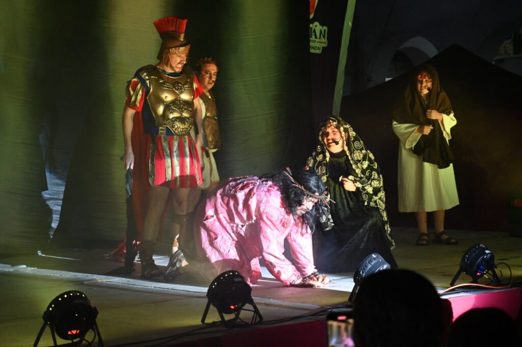 En el marco de las festividades de Semana Santa, familias se dieron cita en la Explanada Municipal para presenciar la puesta en escena de la obra de teatro “La Pasión de Cristo”, un evento que promovió la reflexión y la unidad comunitaria este domingo.
